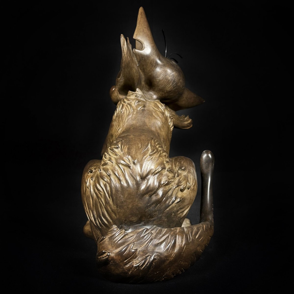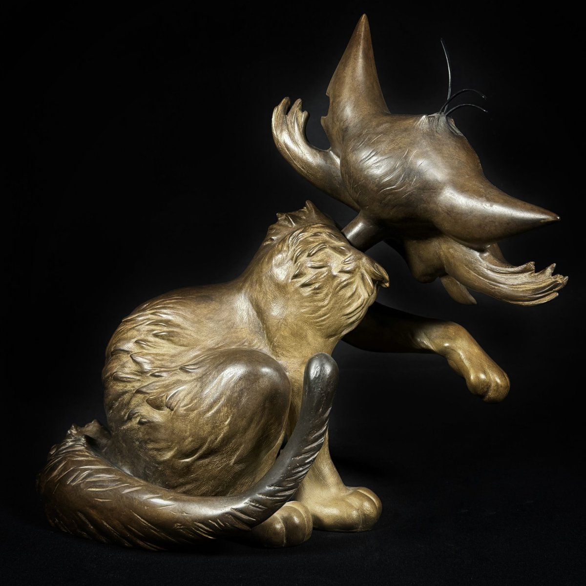 Samuel Boulesteix: « L’interprétation du chat de Gaston reposait sur le juste dosage à trouver entre la caricature et le réalisme auxquels Franquin avait recours. Franquin avait un chat chez lui dont il s’inspirait, ce qui conférait à ce personnage cette vraisemblance incroyable en plus de cette surdose d’expression typiquement BD. Pour véritablement marcher dans les pas de Franquin, il m’a fallu faire comme lui : d’abord assimiler les caractéristiques d’un vrai chat, pour ensuite glisser vers la caricature et tenter de trouver des équivalences en volume à l’énergie de son dessin. »
