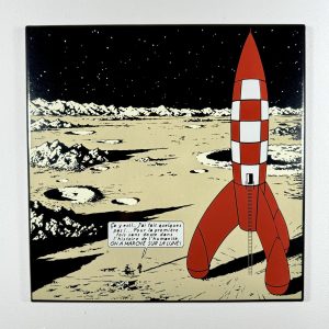 PLAQUE EMAILLÉE TINTIN MARCHE SUR LA LUNE 35 X 35