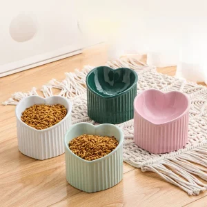Gamelle en Céramique surélevée pour Chat, Forme de Cœur