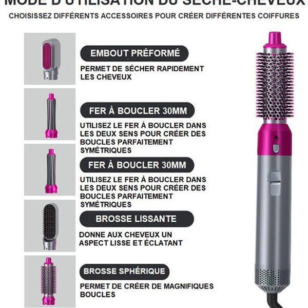 Découvrez Sèche-cheveux 5-en-1 avec Brosse et Fer à Boucler
