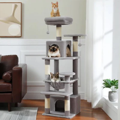😽 Spacieux et Confortable : Avec une hauteur de 136 cm, cet arbre à chat offre beaucoup d’espace avec des hamacs et des condos confortables, garantissant que votre chat puisse s’étirer, se détendre et faire la sieste confortablement.