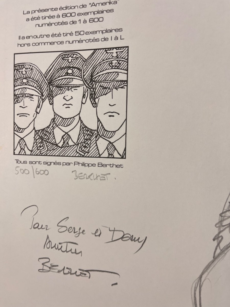 L’album comporte en outre deux dessins dédicacés pleine page – Egalement signés par Berthet – Mine de plomb