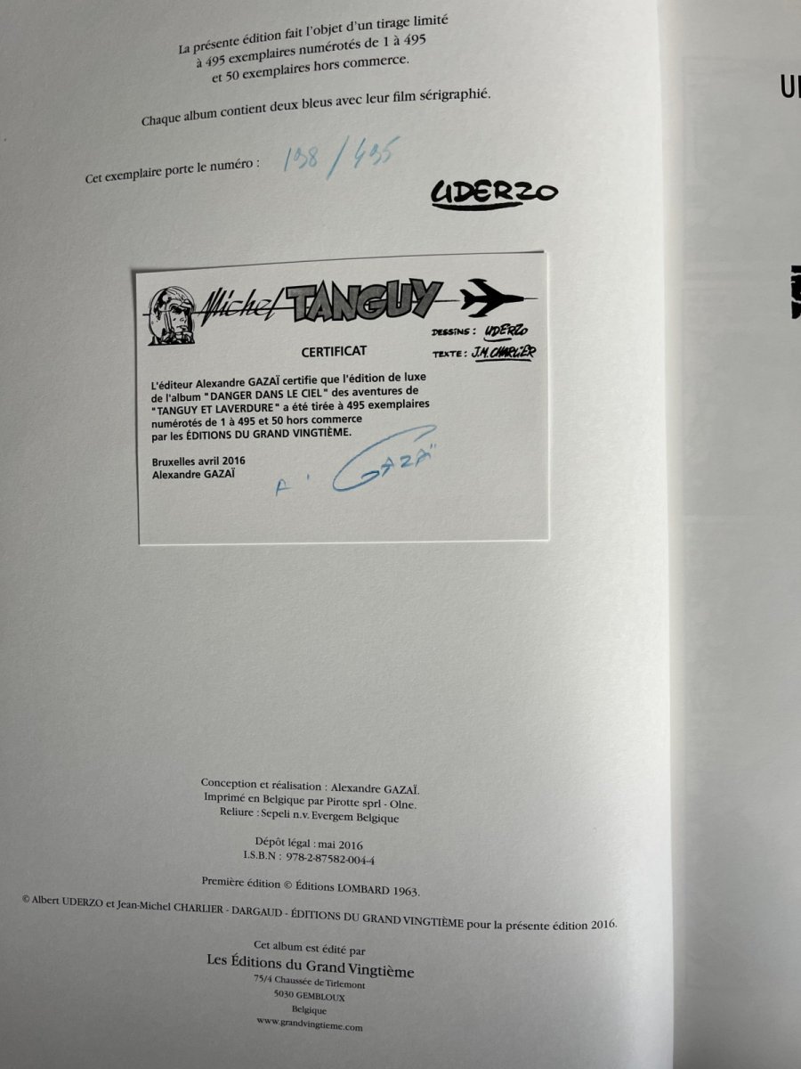 Charlier et Uderzo – Tanguy – Danger dans le ciel – Editions du Grand Vingtième – (2016)