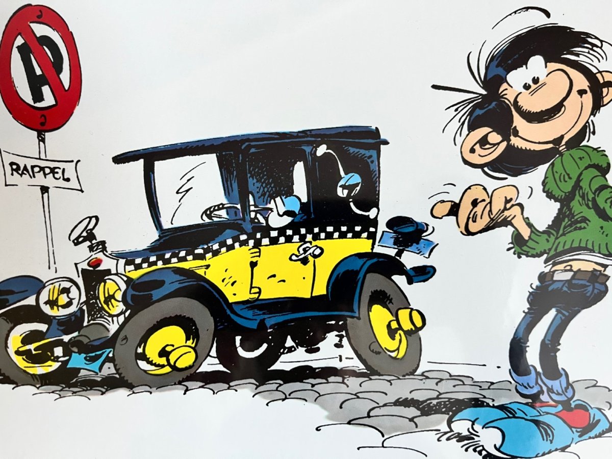 Franquin – Plaque émaillée – Gaston et la Fiat 509 – Collection Les Bombées – Coustoon – 2012
