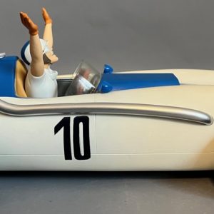 Version commercialisée: Résine et bois – Tirage limité numéroté /266 exemplaires – Numérotation sous le véhicule et sur le certificat – Complet avec le rétroviseur à monter, les instructions de montage, les gants et la lingette – Etat neuf – Dans sa boite d’origine en kraft avec sticker + carton de protection ‘Garage de Franquin’
