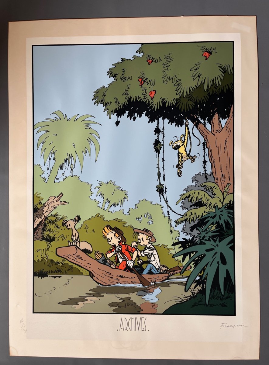 Franquin – Spirou et Fantasio – Sérigraphie La pirogue – Archives Internationales – (1986)