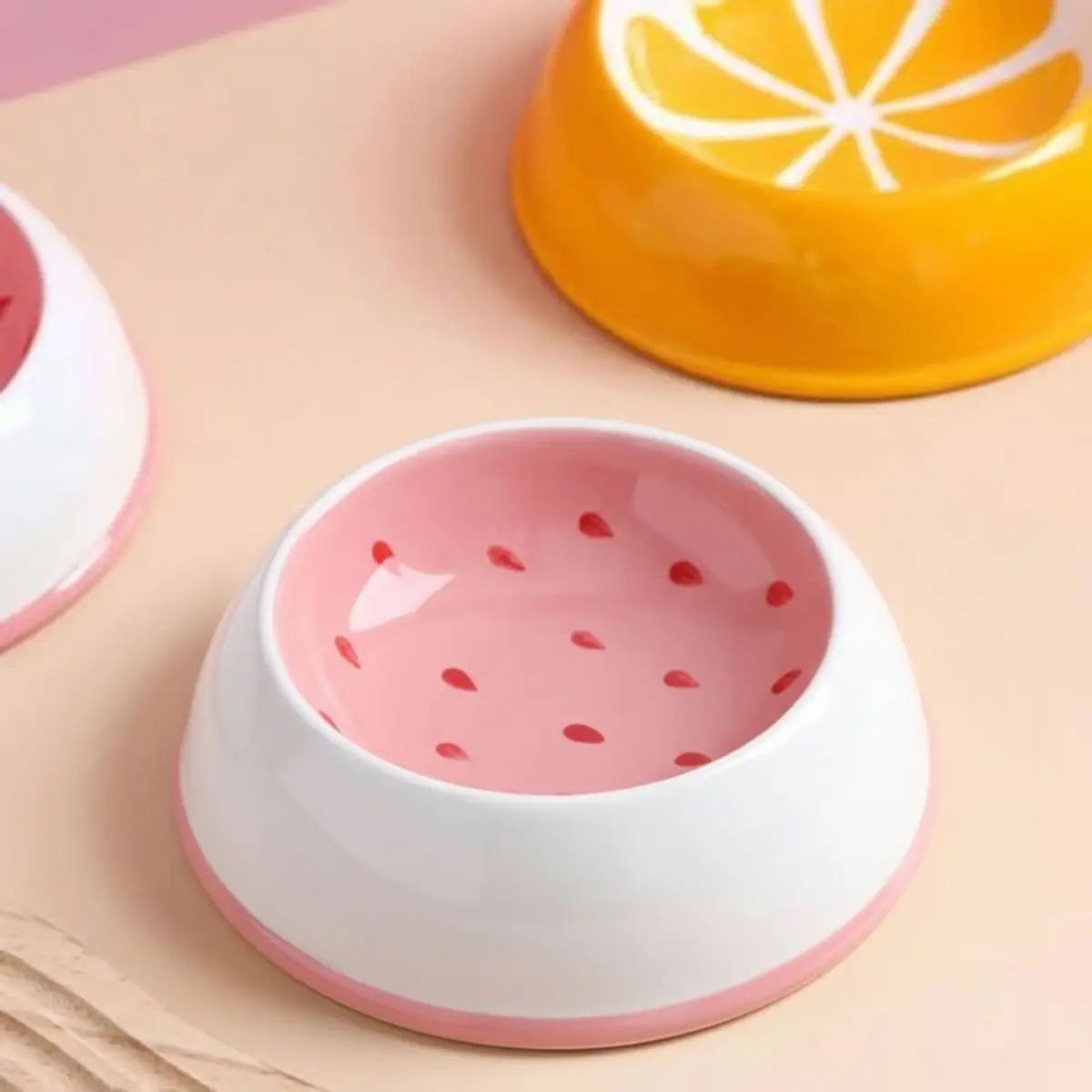 La FruitiZen™ résout ce problème invisible grâce à son design large et peu profond (14,5 cm de diamètre) inspiré des fruits. Imaginez votre compagnon s’approcher avec curiosité de cette gamelle céramique pour chat aux couleurs douces — pastèque rose, fraise rouge, citron jaune ou avocat vert menthe. Il plonge son museau sans hésitation, ses moustaches ne touchent plus les parois, et il dévore son repas avec un enthousiasme retrouvé.