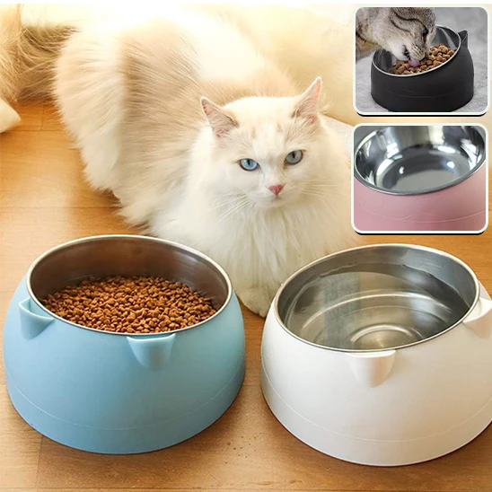 Notre gamelle pour chat inclinée est conçue avec un rebord surélevé et une base antidérapante, réduisant de 90% les éclaboussures et les débordements.