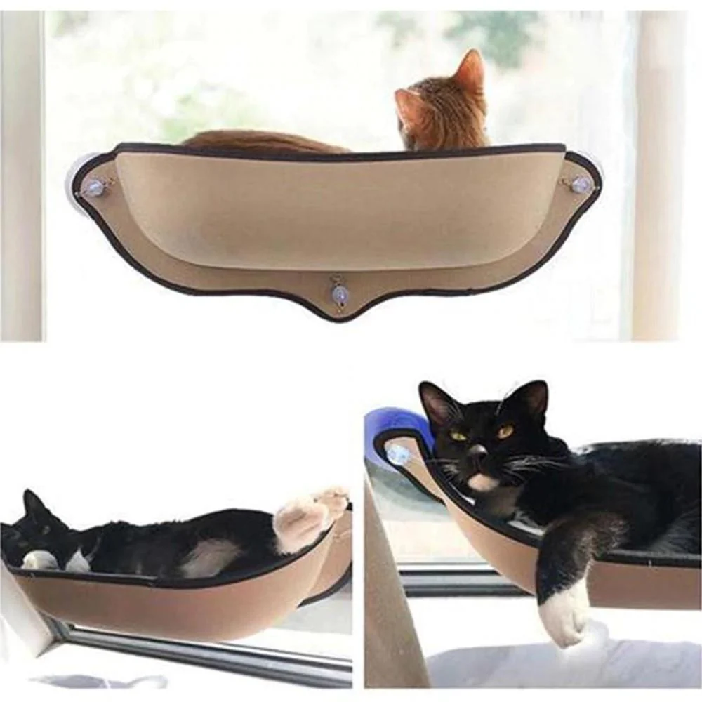 Cet hamac avec ses fixations en ventouses deviendra rapidement l’un des endroits préférés de votre chat pour se percher ou se cacher !