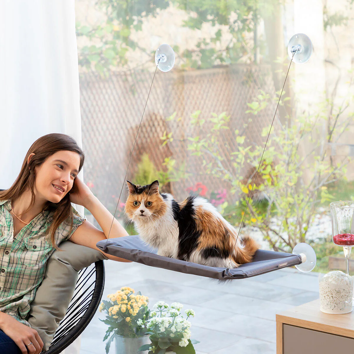 Imaginez votre chat profitant d’une vue panoramique, se prélassant au soleil ou observant la maison depuis son espace personnel surélevé. Ce hamac suspendu transforme une simple fenêtre en aire de jeu et d’observation exclusive, tout en optimisant votre espace et en maintenant l’ordre dans votre intérieur.