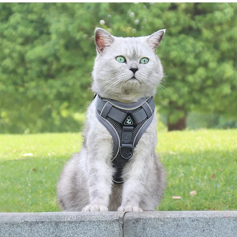 🐾 Un harnais pour chat sur mesure : des sangles adaptées aux félins pour répartir la pression de la laisse et prévenir tout risque d’étranglement