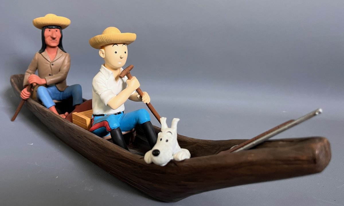 Hergé – Figurine Tintin et l’indien dans la pirogue – L’Oreille Cassée – Collection Images Mythiques – Leblon Delienne/Moulinsart – (2004)