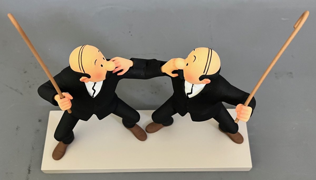 Etat comme neuf – On notera une très légère marque là ou les cannes s’insèrent dans les mains des Dupondt (non visibles une fois les cannes insérées)