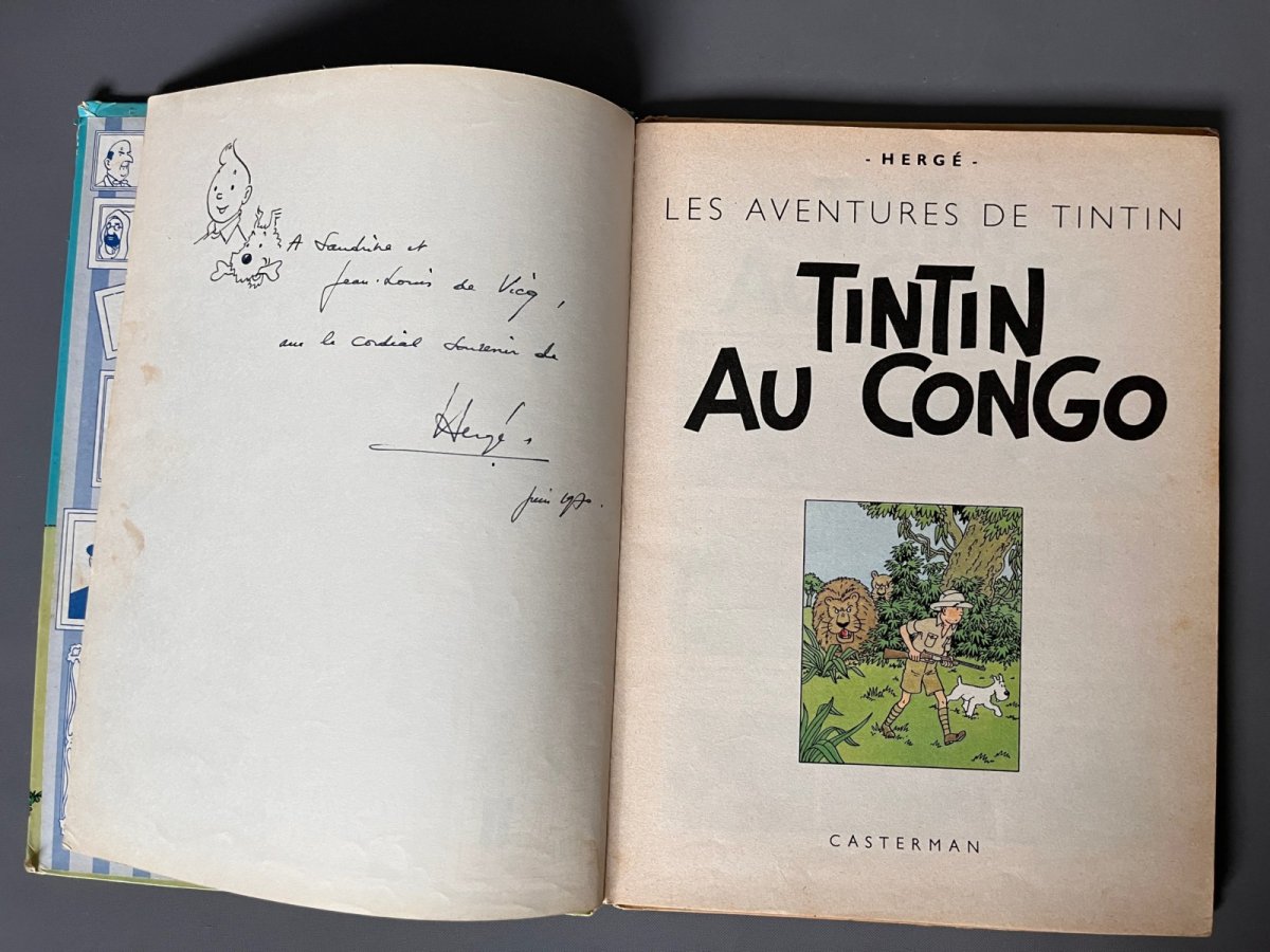 Hergé – Tintin au Congo – Avec dessin dédicacé et signé – B39 – Casterman – (1970)