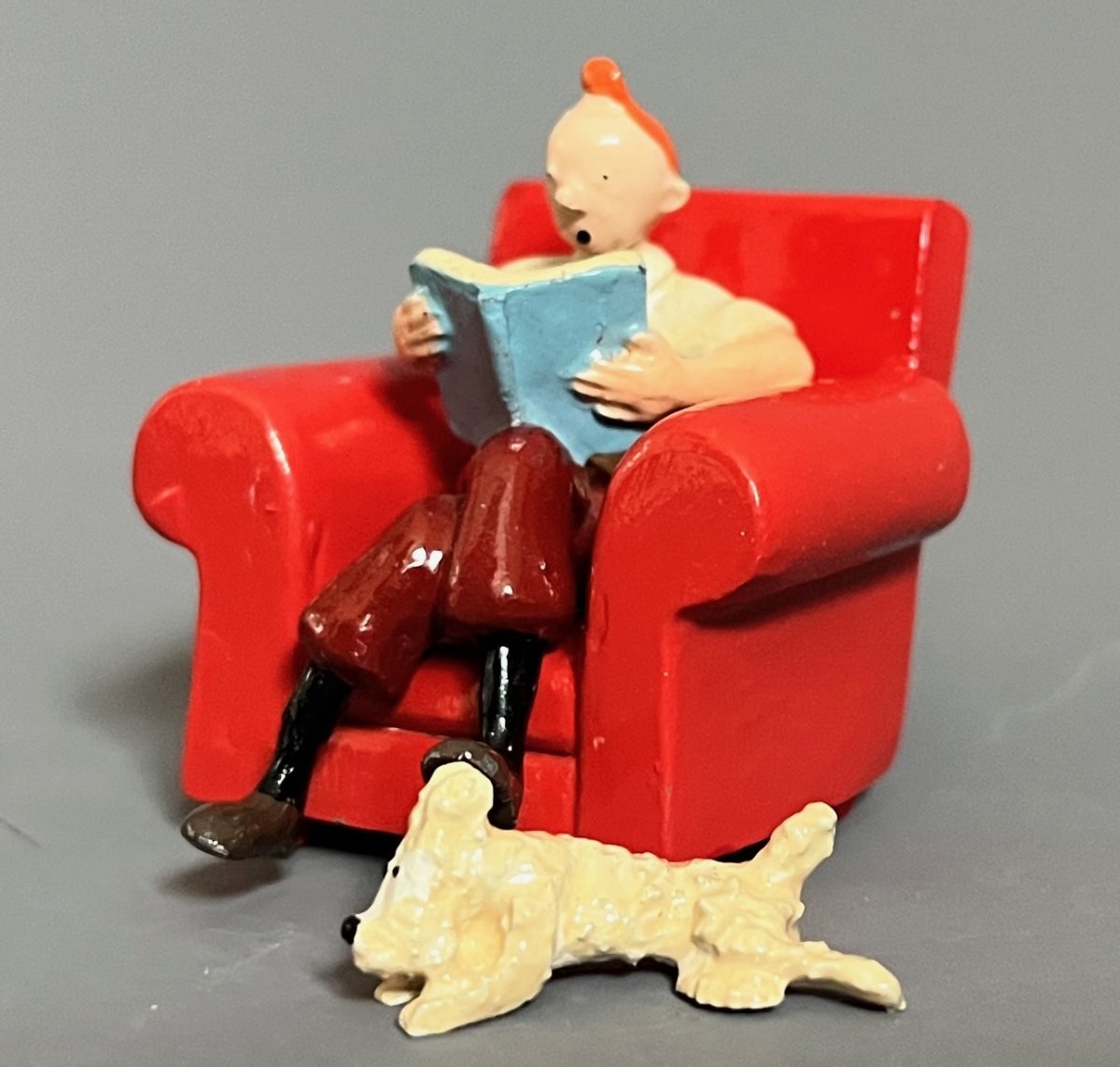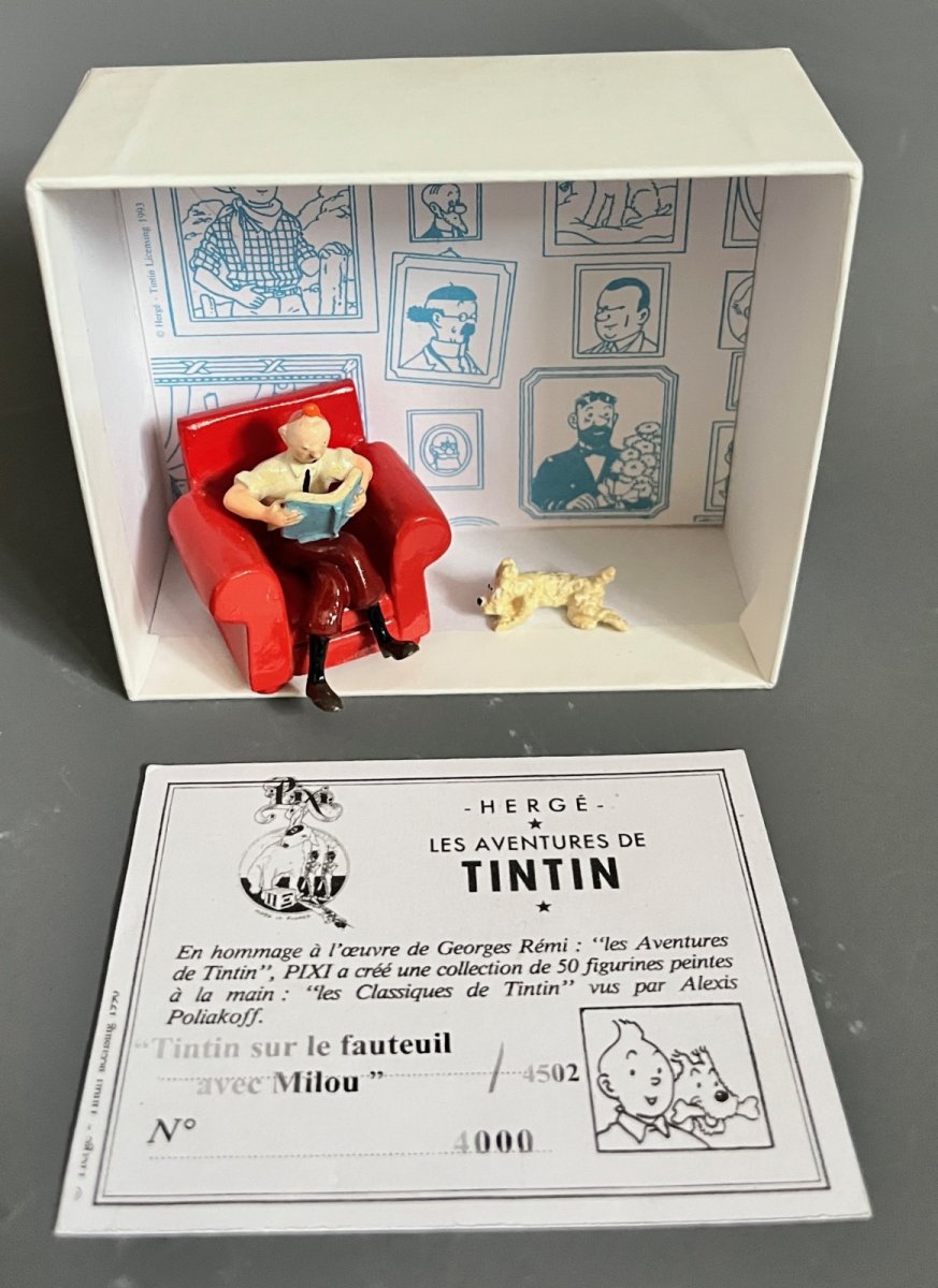 Hergé – L’oreille cassée – Tintin dans le fauteuil avec Milou – ref. 4502 – Pixi – (1990)