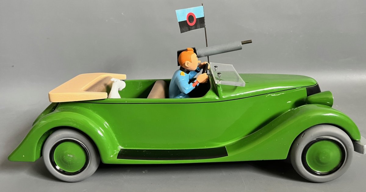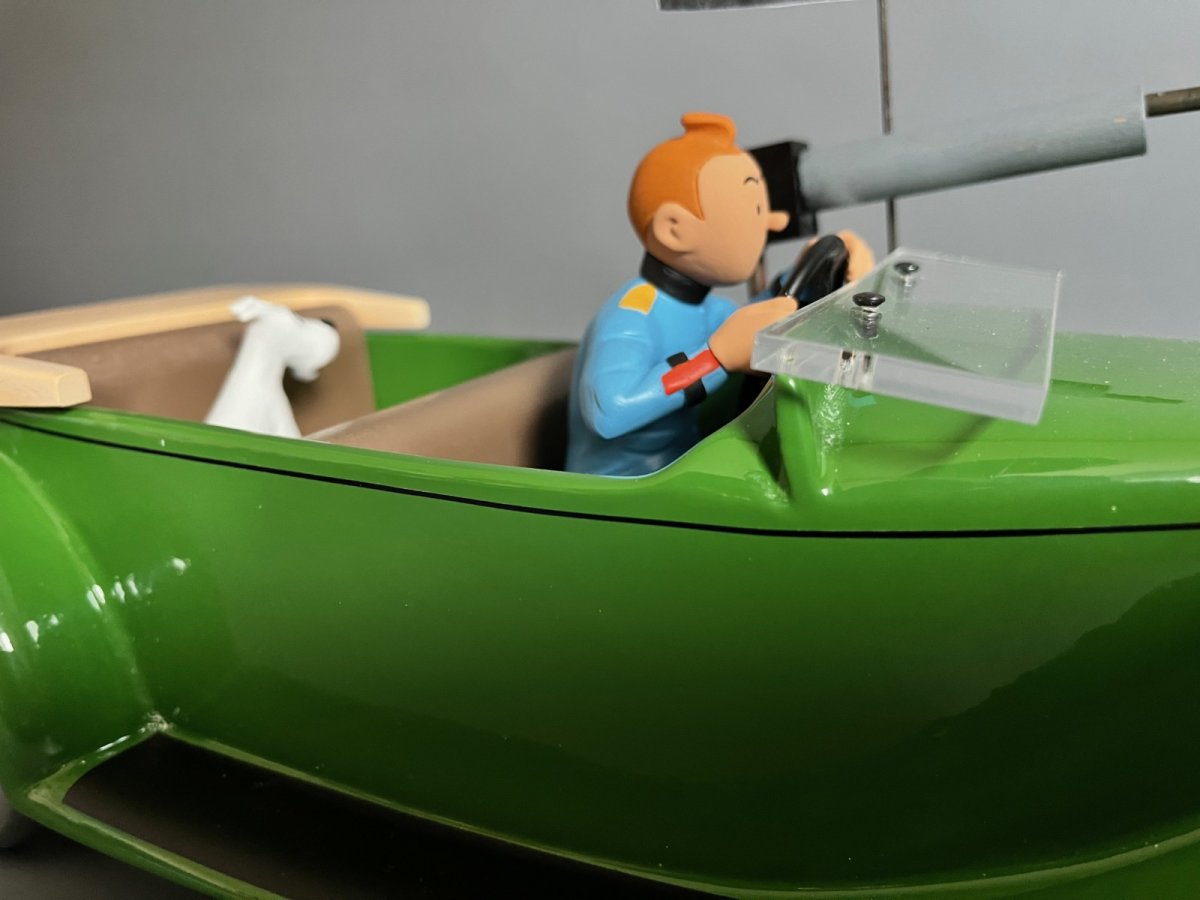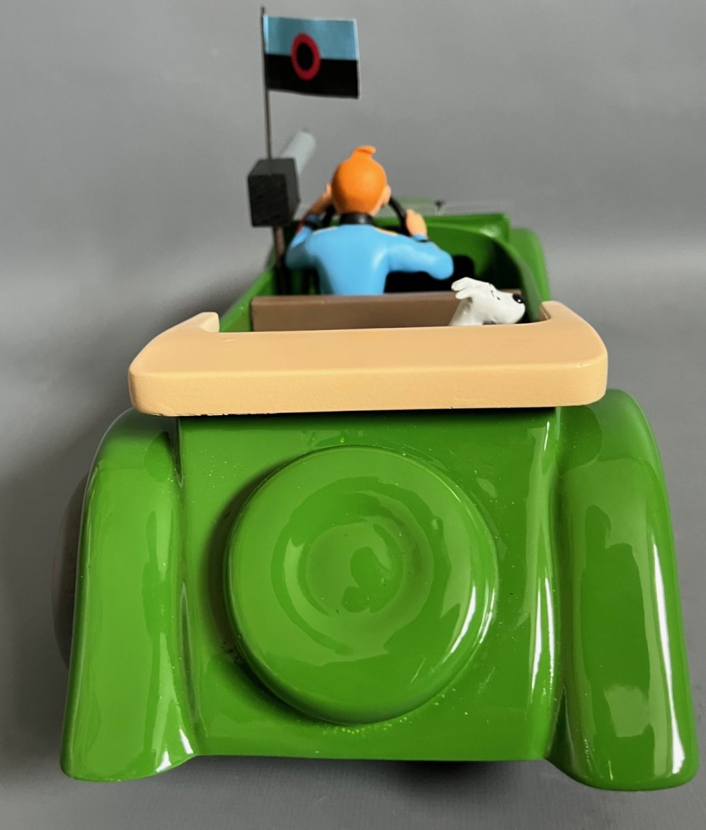 La packard avec Tintin et Milou inspirée de l’album L’oreille cassée – Version bois, avec les sièges en bois laqués