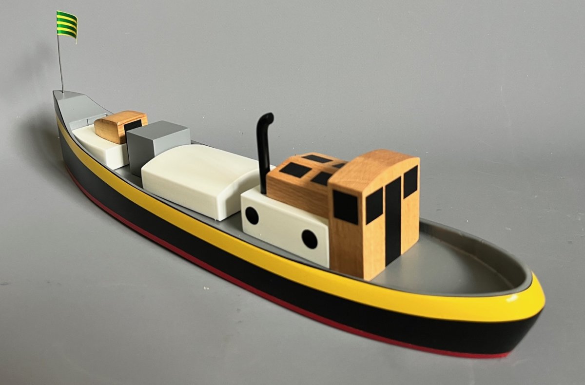 Le ravitailleur Golden Oil de L’étoile Mystérieuse – En boisp eint à la main – Version 1, avec le liseré rouge en bas de la coque – 7,5X39 cm