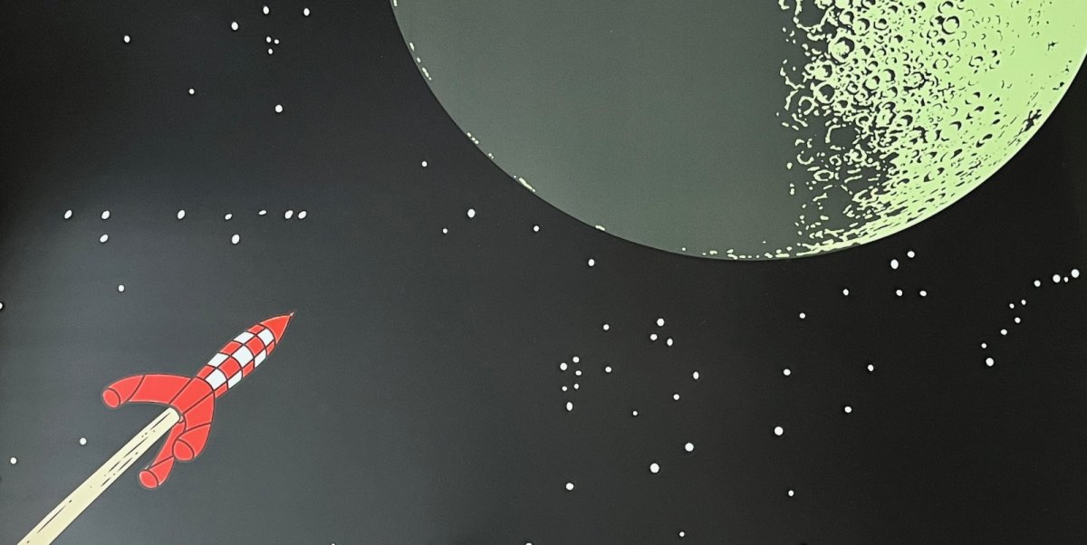 Hergé – Tintin – Plaque émaillée Fusée approchant la lune – Emaillerie Belge – 100cm – 1985