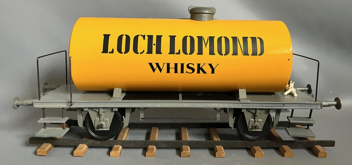 Très bel état – On notera la présence de traces d’exposition çi et là sur la peinture grise – Restauration au niveau d’un des rails (voir photo) – Le vernis du wagon est en état impeccable – Les personnages ont été collés à l’époque