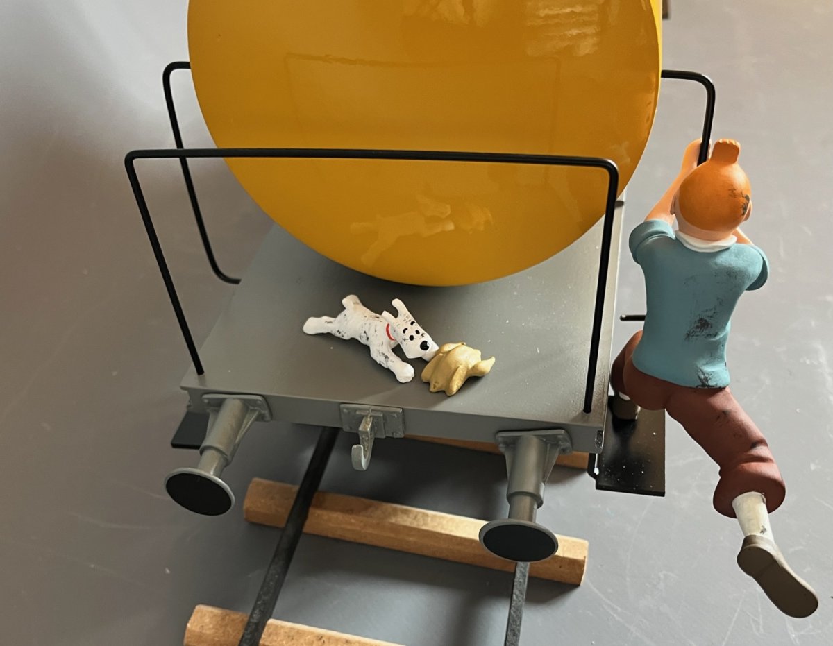 Version variante une seule marche de 1996, simple marche en métal,  du célèbre wagon Loch Lomond sculpté par Michel Aroutcheff et inspiré des Aventures de Tintin L’Ile Noire
