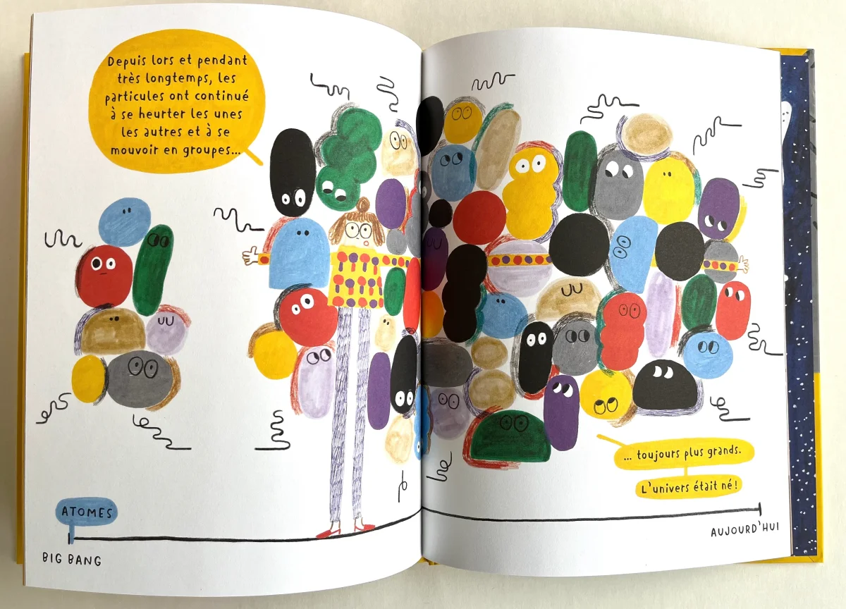 Nous ne savons pas comment l’Univers est apparu, mais nous savons qu’il est né dans un très petit endroit. Cela semble impossible, mais c’est vrai : tout a commencé quand les grandes choses étaient petites…Qu’est-ce que l’Univers ? Du Big Bang en passant par le « supercontinent initial » et même les grands-parents, cet album loufoque mais complètement sérieux et documenté nous embarque dans une rayonnante odyssée à l’origine de l’Univers !