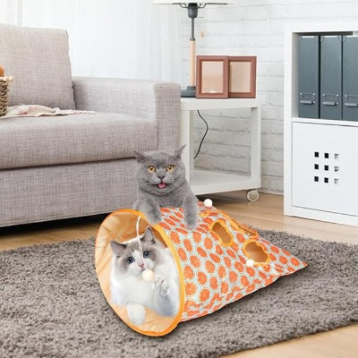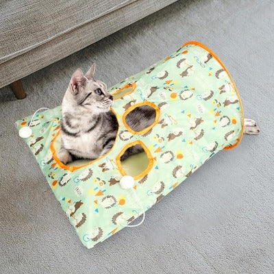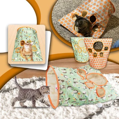Le jouet pour chat Miaou Tunnel™ dispose d’un joli motif amusant en papier qui fait des bruits de « bruissement » lorsqu’il est joué, et il a une souris attrayante et une balle en peluche à l’intérieur, offrant un divertissement et une excitation infinis pour votre chat.