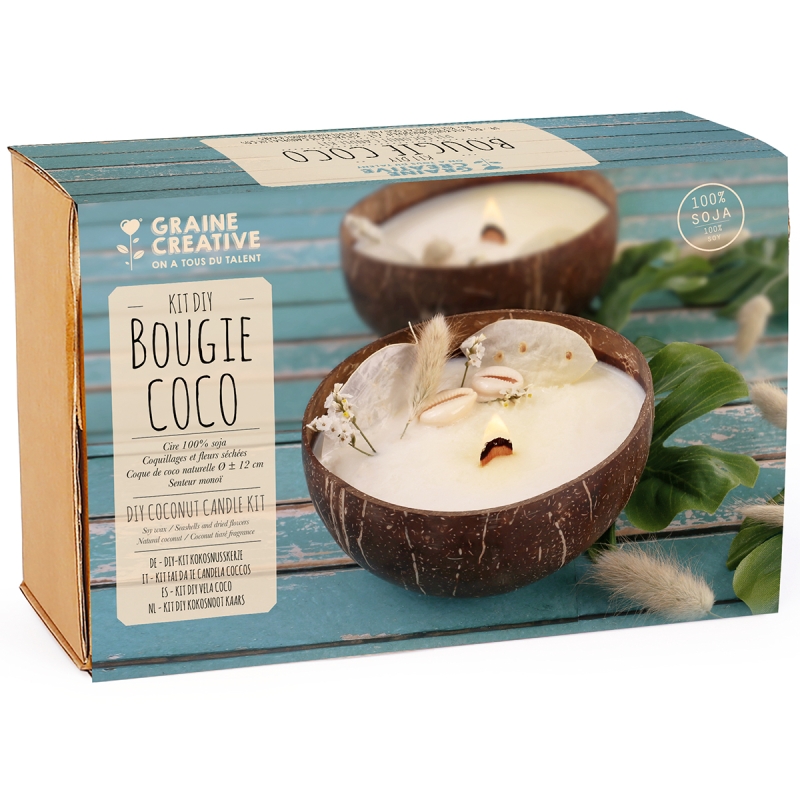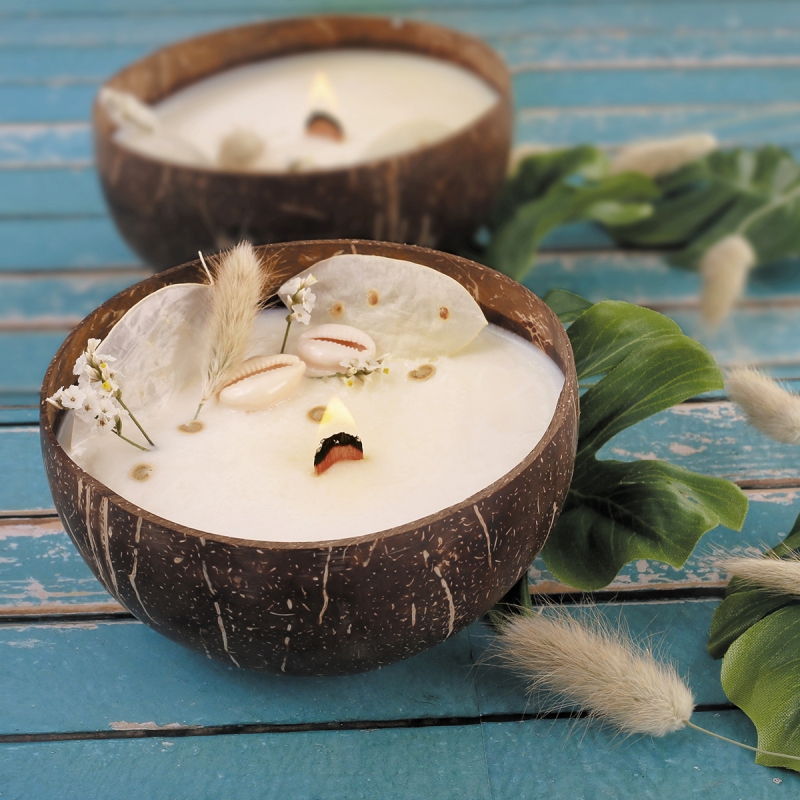 Ce kit Bougie DIY contient tout le matériel et les instructions pour réaliser une bougie 100% naturelle et parfumée au monoï qui sent bon les îles ! Et en plus, on adore son look dans sa noix de coco !