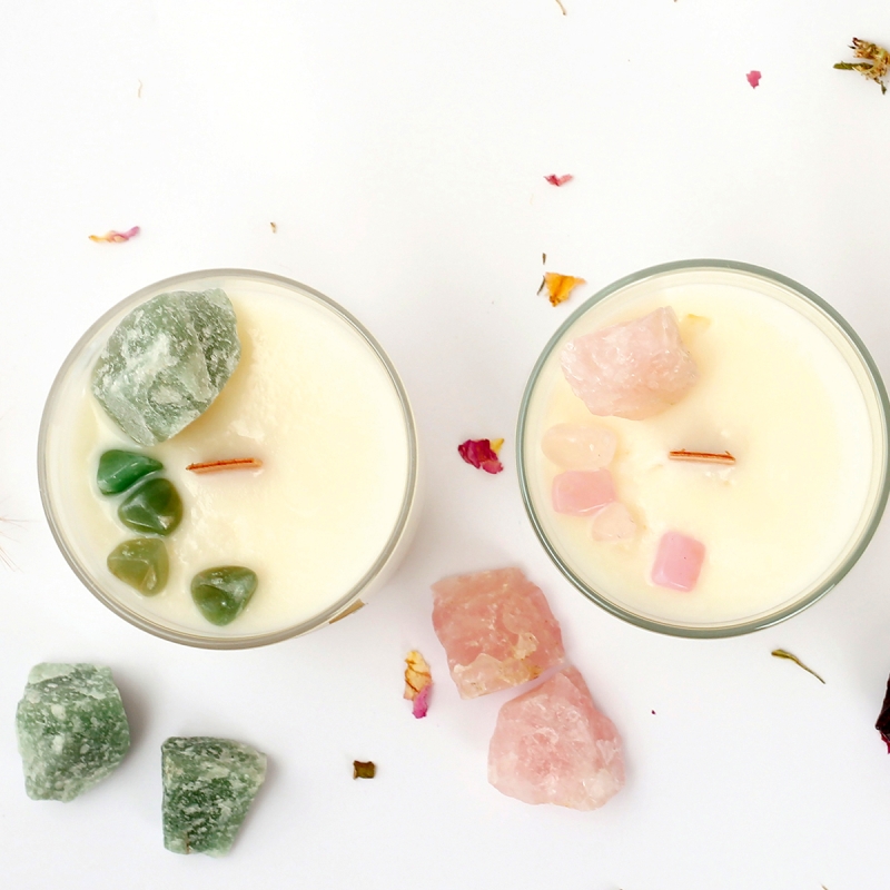 Découvrez ce kit DIY bougie qui allie la fabrication d’une bougie parfumée aux notes de vanille poudrée à l’art de la lithothérapie.