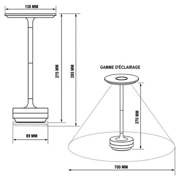 - Dimensions : environ 27,5 cm × 13 cm — petite lampe facile à déplacer