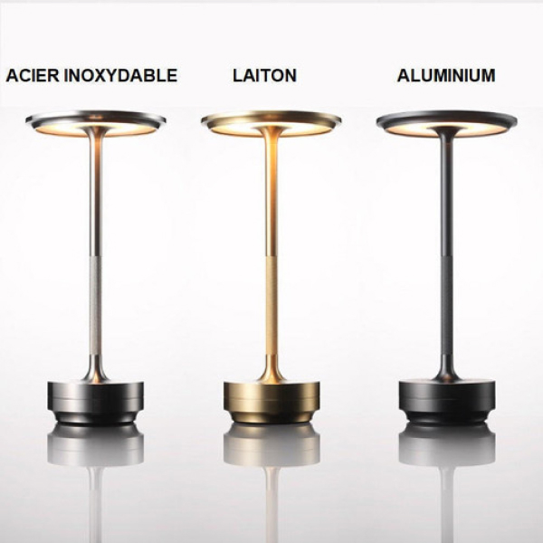 - Matériaux : acier inoxydable (argenté), laiton (doré), aluminium (noir)