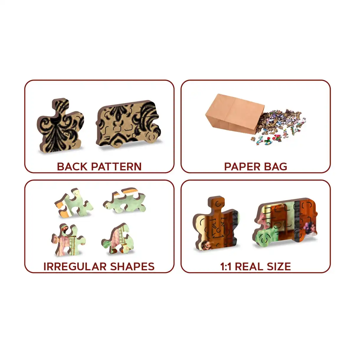Ce produit offre plus que de simples pièces standard. Chaque pièce de puzzle a sa forme unique, ajoutant une couche supplémentaire de complexité et d’intrigue au processus d’assemblage. En outre, votre expérience est rehaussée par des éléments plus grands et façonnés qui peuvent être des animaux ou des monuments, en fonction du thème du puzzle, rendant le processus de construction encore plus excitant.