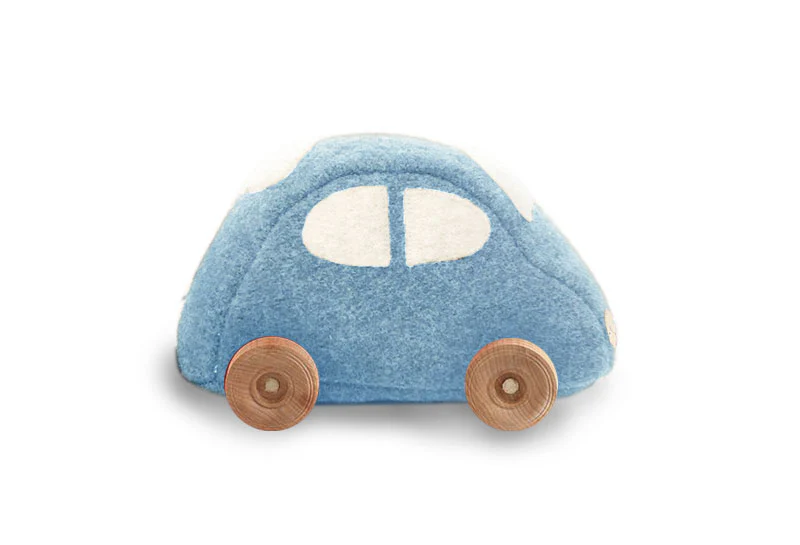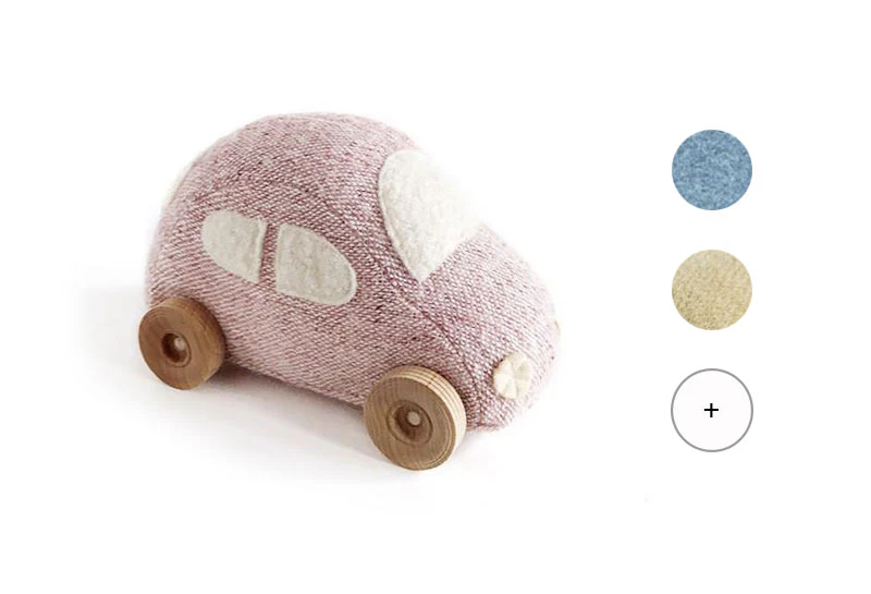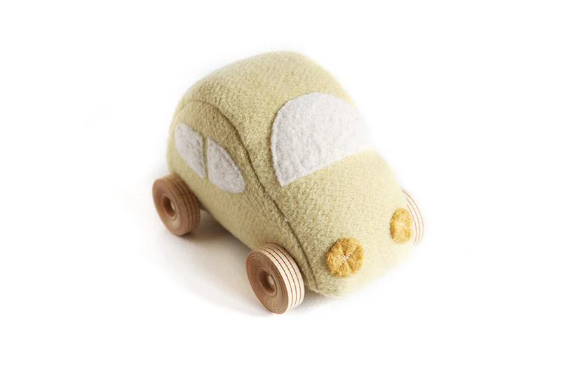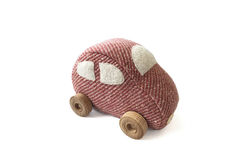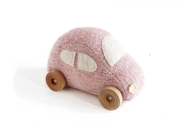 Cette petite voiture de laine est le jouet idéal pour les aventuriers allant à la découverte du monde à quatre pattes.