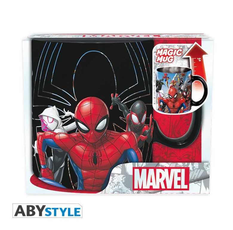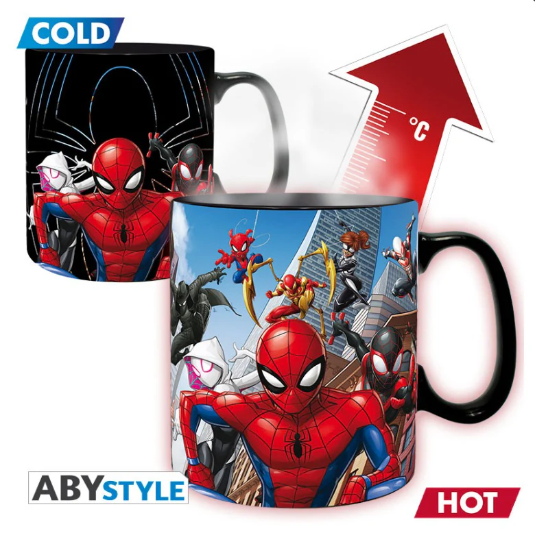 - Dites bonjour à Spider-Man, Miles Morales et Spider Gwen sur ce mug thermo-réactif Marvel ! Versez votre boisson chaude sur votre tasse et plongez dans le Spider-verse alors qu’une bataille massive est sur le point de commencer !