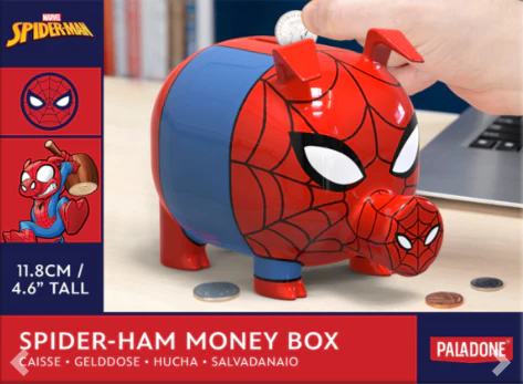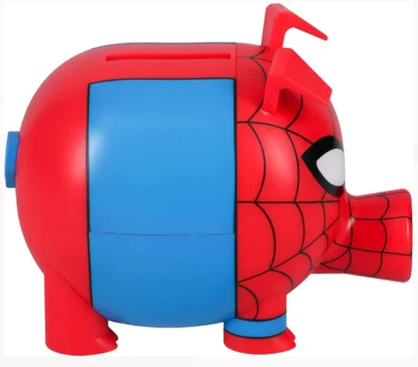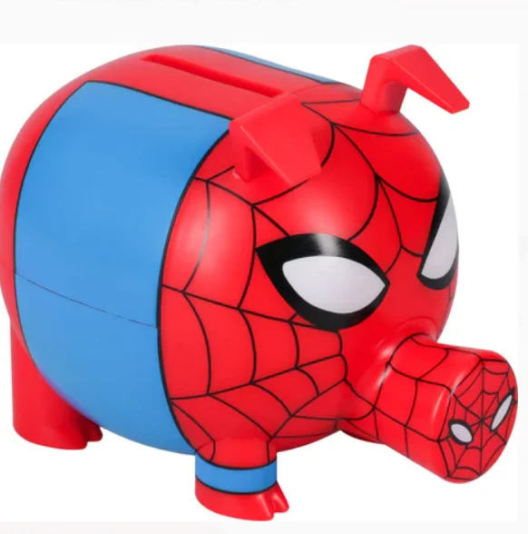 - Tirelire en plastique en forme de cochon Spider-Man avec fente pour pièces de monnaie.