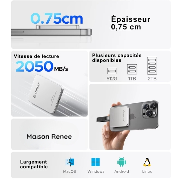 • Fonctionnalités supplémentaires : Compact et portable, idéal pour photos, vidéos et documents en déplacement
