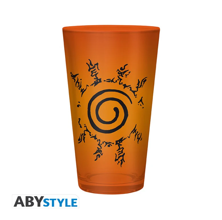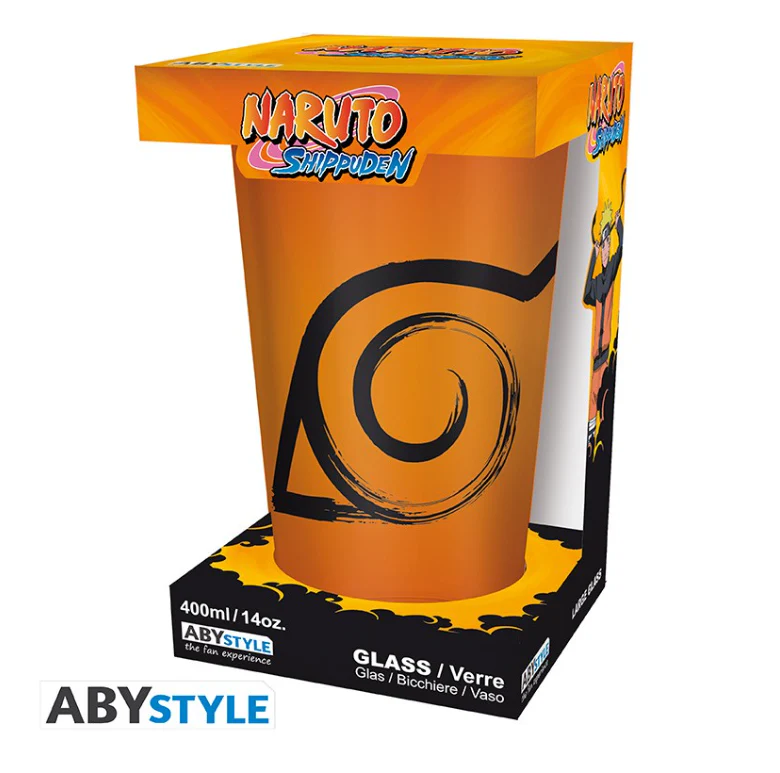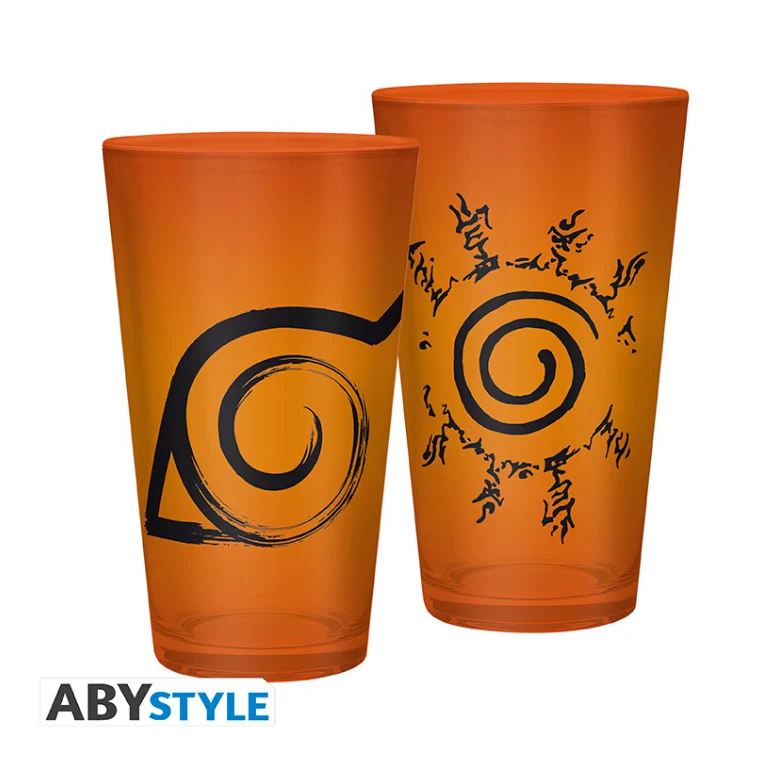 - Ce verre Naruto Shippuden par ABYstyle représente l’emblème du village de Konoha et le sceau qui a scellé Kyubi dans Naruto.