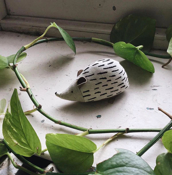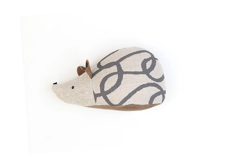 Ce petit hérisson est fait à la main à Montréal dans des retailles de lin sérigraphié par Bookhou, à Toronto, avec des encres sans solvant. Il deviendra l’ami parfait des petits, autant pour les accompagner durant les siestes que pour le thé avec les poupées. Il sera aussi un objet déco partout où il se cachera dans la maison.