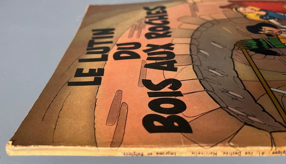 Edition originale Belge – Etat correct à bon – Plats avec pliures d’usage – Micro déchirure au 1er plat sur la tranche de droite sur 1,5 cm – Tâches d’usage au 2 plat – Coins pliés et tassés – Tranches frottées – Dos avec écritures en bel état – Manque sur 2 cm dans le bas du dos – Coiffes tassées – Page de titre se désolidarise de la reliure (sans toutefois se détacher) – Pliures de lecture sur la coin supérieur gauche des pages intérieures – Intérieur avec les classiques pliures de lecture – Pas de tâches de lecture – Cahier homogène