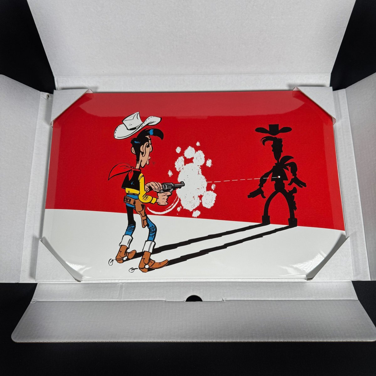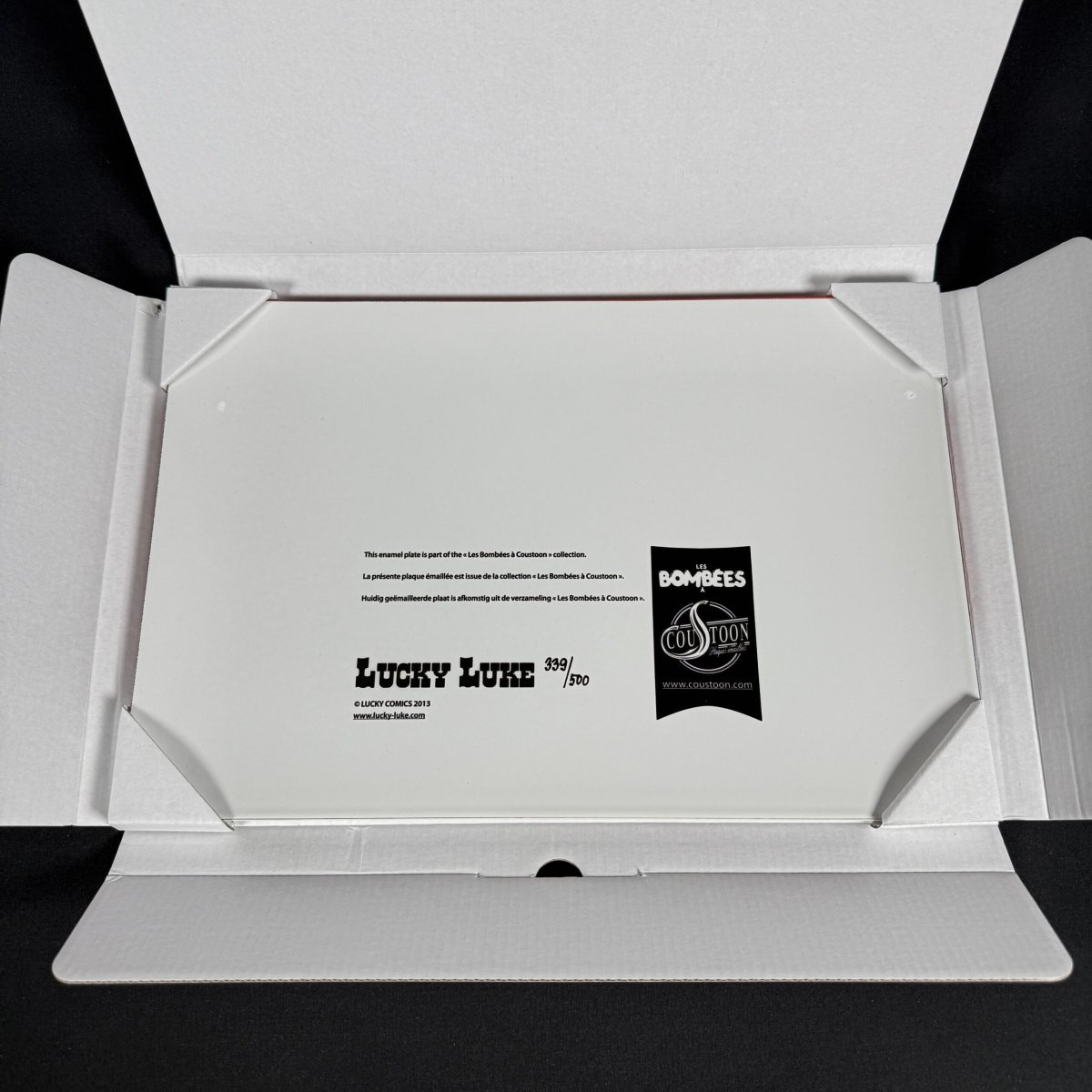Plaque émaillée Lucky luke, Morris – Collection des plaques bombées signée Coustoon.
