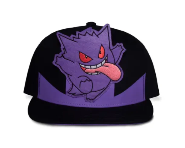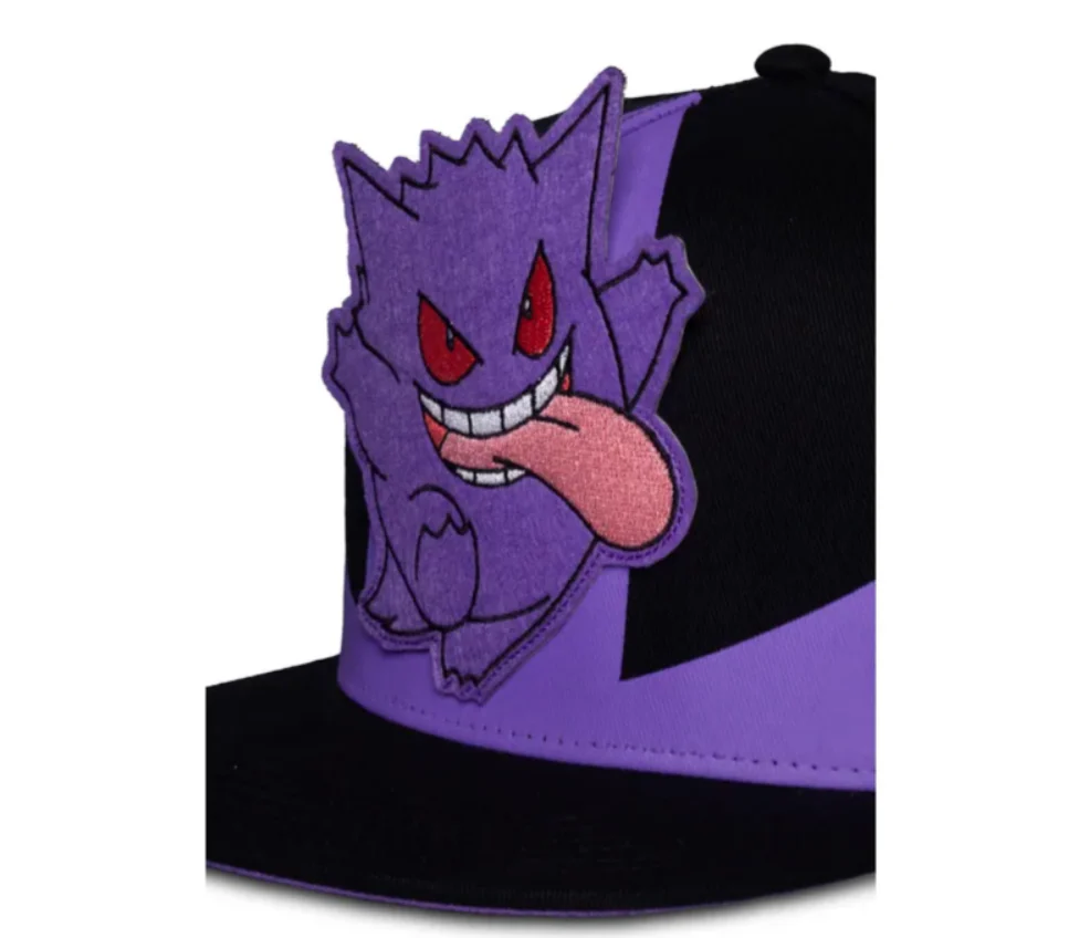 - Affichez votre amour pour l’espiègle Pokémon Gengar avec cette casquette noire à bord plat. Avec un patch en feutre représentant Gengar tirant la langue, cette casquette est parfaite pour tous les fans de Pokémon.