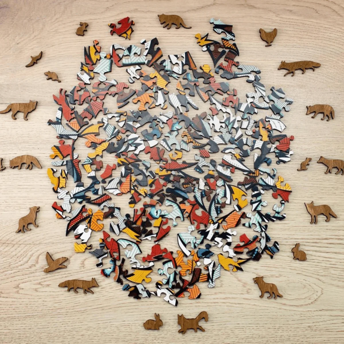 Des puzzles en bois classiques colorés avec des formes d’éléments inhabituelles, qui rendent le processus d’assemblage encore plus excitant. Le design unique de chaque puzzle réalisé en collaboration avec Andreas Preis — artiste, designer et illustrateur allemand doté d’une technique de dessin impressionnante.