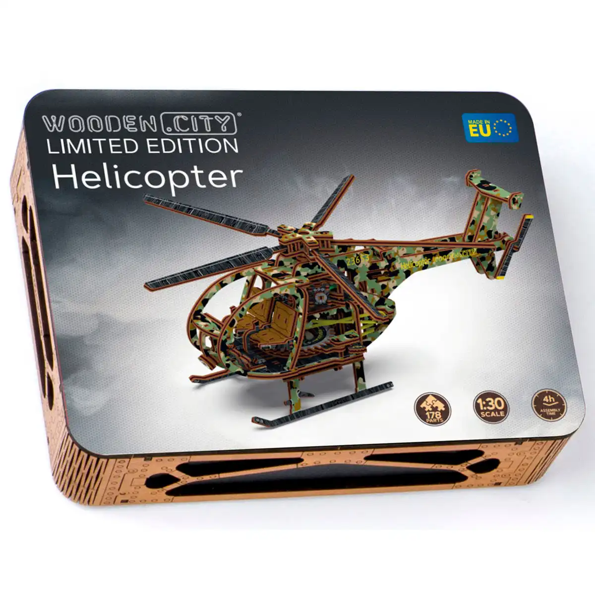 Ce modèle fait partie de la série exclusive Édition Limitée de Wooden.City, combinant l’art détaillé avec des schémas de couleur éblouissants. Chaque modèle de cette collection se distingue, offrant une touche vibrante à vos designs d’hélicoptères préférés.