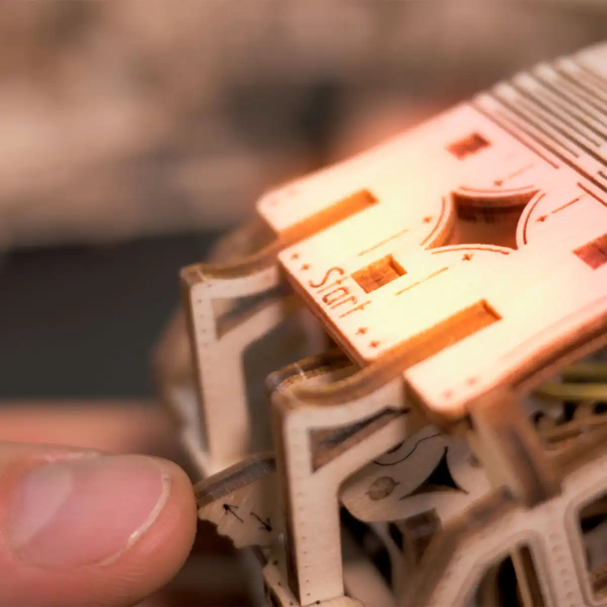| La boîte est en bois. À l’intérieur, vous trouverez des instructions expliquant comment, après avoir assemblé le modèle, vous pouvez également assembler la boîte dans un support de démonstration. | ✔ |