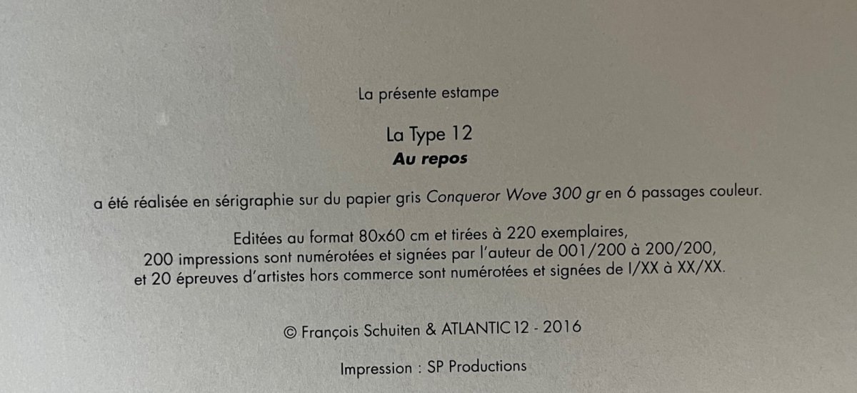 Schuiten, François – Sérigraphie La Type 12 – Au repos – Signée – Atlantic 12 – 2016