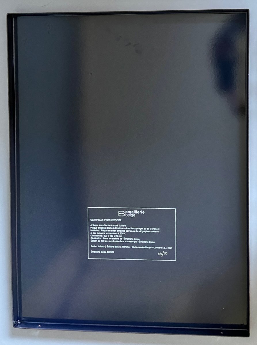 Sente et Juillard – Blake et Mortimer – Plaque Emaillée – Les sarcophages du 6e continent – Emaillerie Belge – (2024)