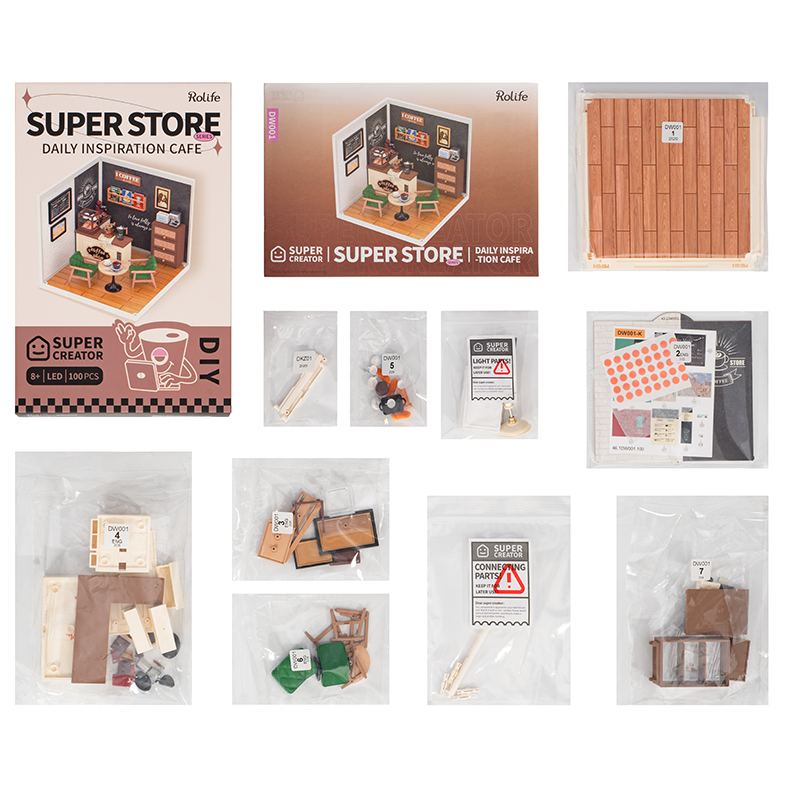 Le Daily Inspiration Cafe est le premier modèle de la série Super Creator. Avec son design simple à clipser et ses divers autocollants sans colle, cette maison en plastique peut être facilement assemblée en 45 minutes. Le toit supplémentaire et la porte anti-poussière peuvent être achetés pour rendre votre café-restaurant plus amusant. De plus, elle peut être assemblée avec d’autres maisons de cette série afin de créer des maisons de différentes formes.