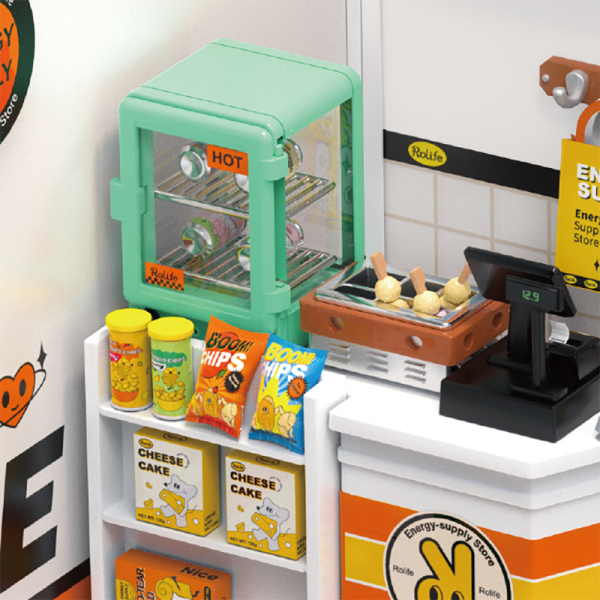 Cette maison miniature en plastique de la série Rolife Super Creator présente une scène d’une épicerie qui contient une variété de produits alimentaires. Comme un magasin moderne que l’on peut souvent voir dans la vraie vie, il présente des couleurs très vives et un design détaillé. Avec une insertion facile, il peut être assemblé en 45 minutes sans collage. Le toit ainsi que 2 portes anti-poussière sont inclus dans ce pack. De plus, elle peut être assemblée avec d’autres maisons de cette série afin de créer des maisons de différentes formes.