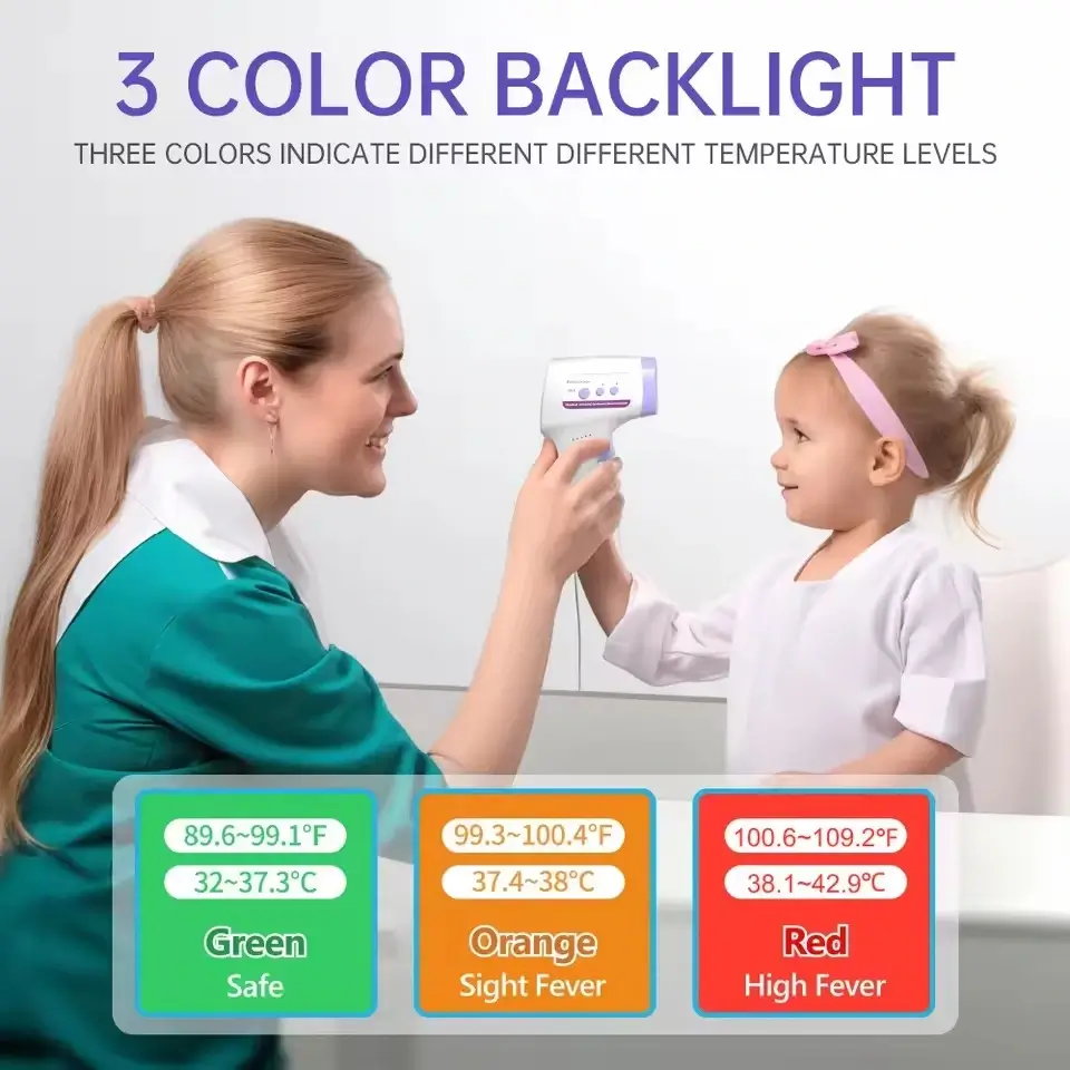 Compact et hygiénique, il permet une mesure sans contact à une distance de 1 à 3 cm, idéal pour les bébés, même en plein sommeil. Son grand écran rétroéclairé offre une lecture facile, de jour comme de nuit.