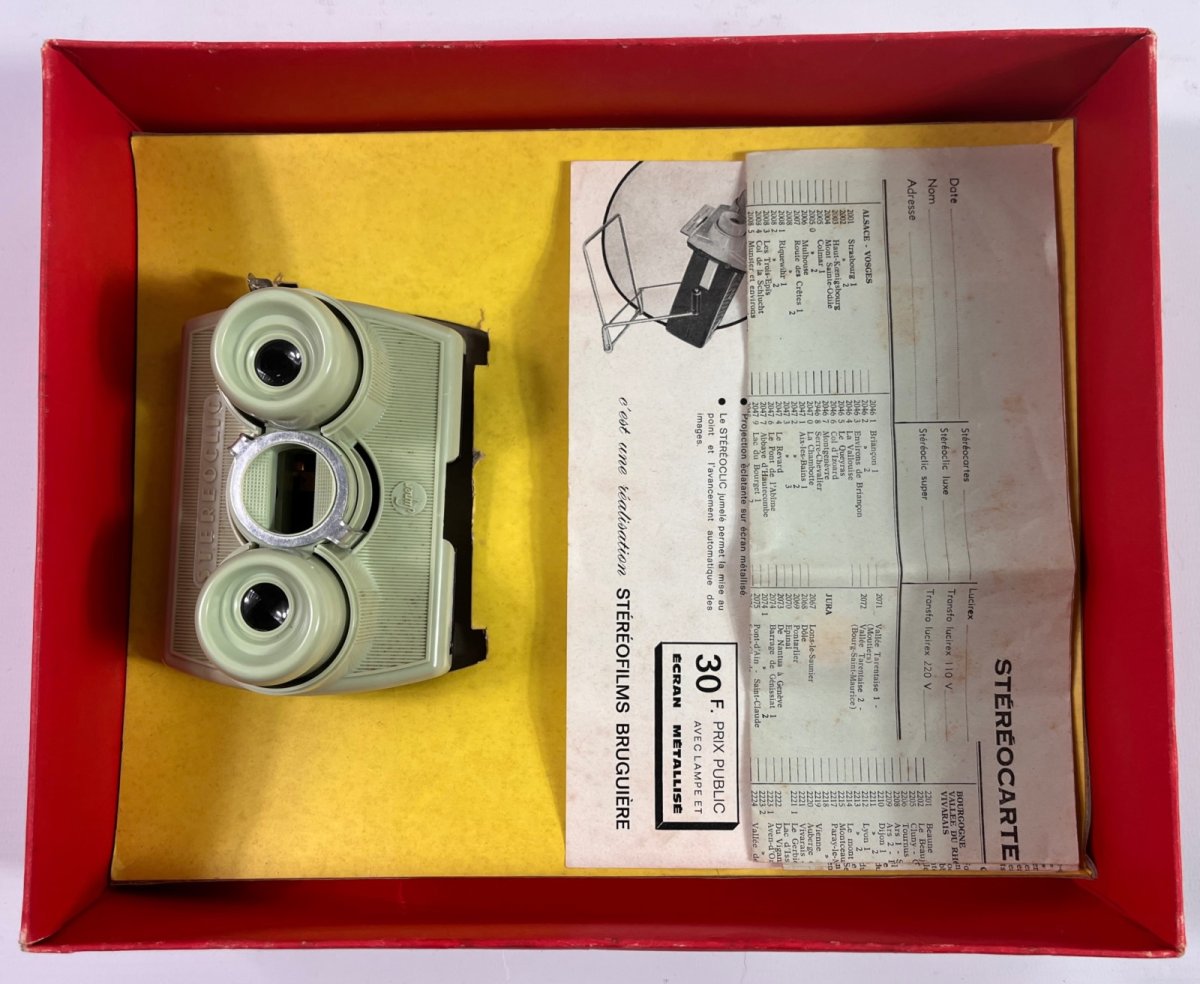 Boite en état d’usage – Coin inférieur gauche davantage tassé – Le sétéroclic fonctionne – Il manque un des calques (aisément remplaçable)