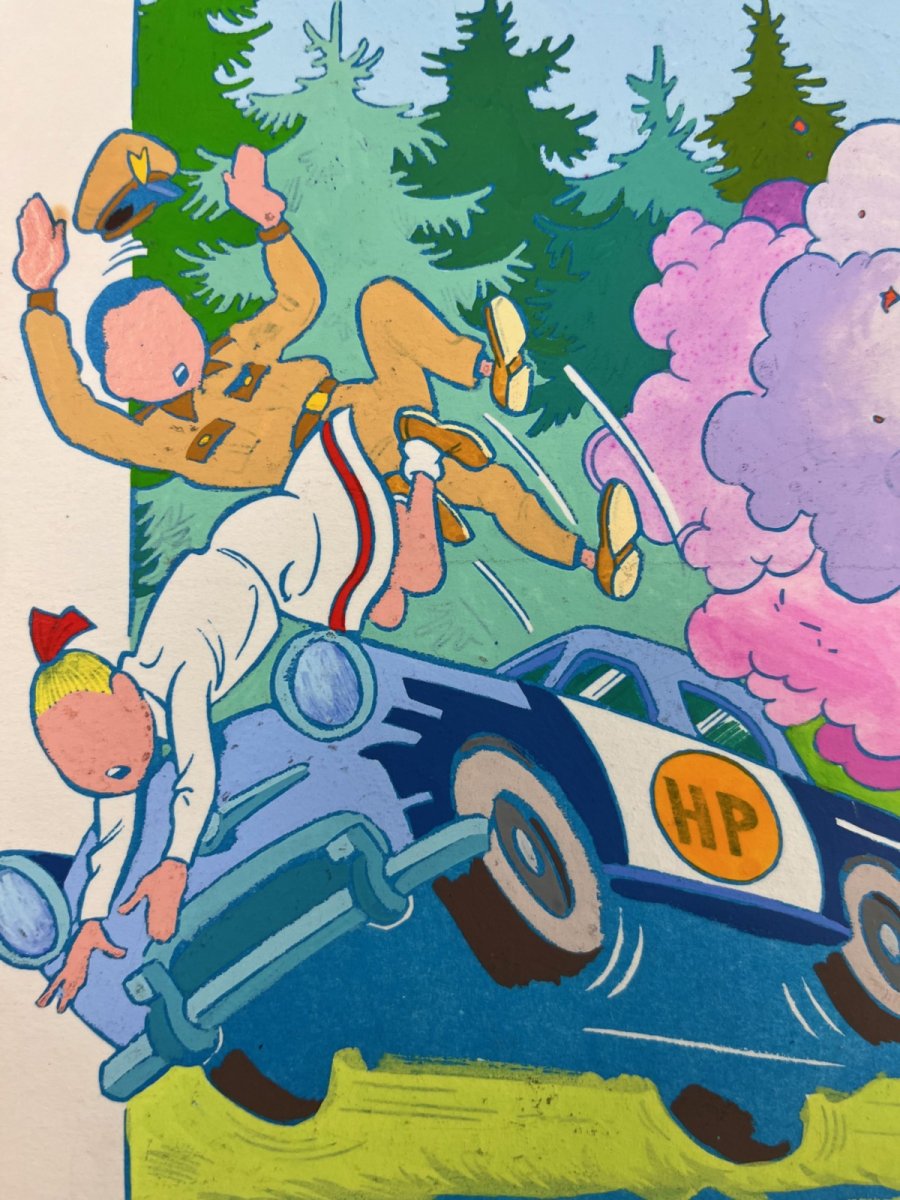 Bleu de coloriage pour la couverture de l’album Les Champignons chanteurs, 31e tome des aventures de Bob & Bobette